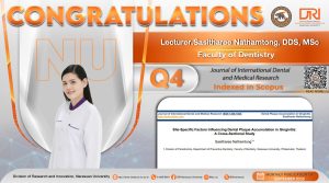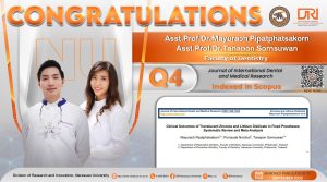 ขอแสดงความยินดีกับ อ.ทพญ.ศศิธารี นาถ้ำทอง ภาควิชาทันตกรรมป้องกัน สาขาวิชาปริทันตวิทยา ที่มีผลงานตีพิมพ์ในวารสารระดับนานาชาติ SCOPUS