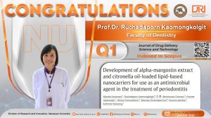 ขอแสดงความยินดีกับ ศ.ดร.ทพญ.รัชดาภรณ์ เค้ามงคลกิจ ภาควิชาทันตกรรมวินิจฉัย สาขาวิชาเวชศาสตร์ช่องปาก ที่มีผลงานตีพิมพ์ในวารสารระดับนานาชาติ SCOPUS