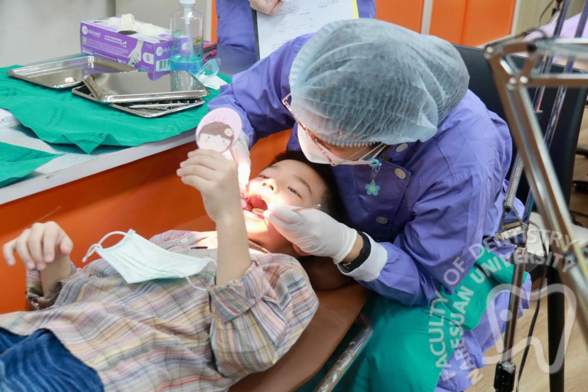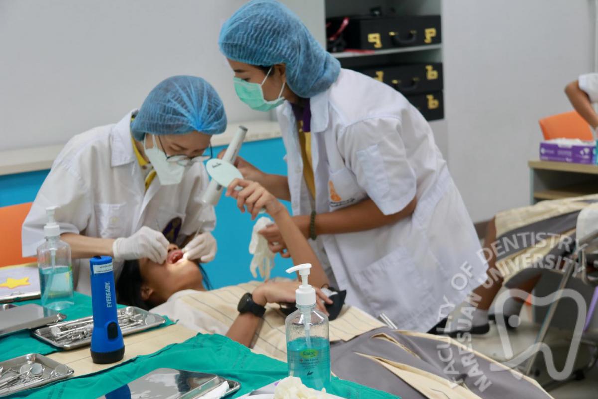 โดยให้บริการตรวจฟันนักเรียนโรงเรียนสาธิตมหาวิทยาลัยนเรศวร ชั้นอนุบาล 1 – 3 และชั้นประถมศึกษาชั้นปีที่ 1 – 6 จำนวน 450 คน