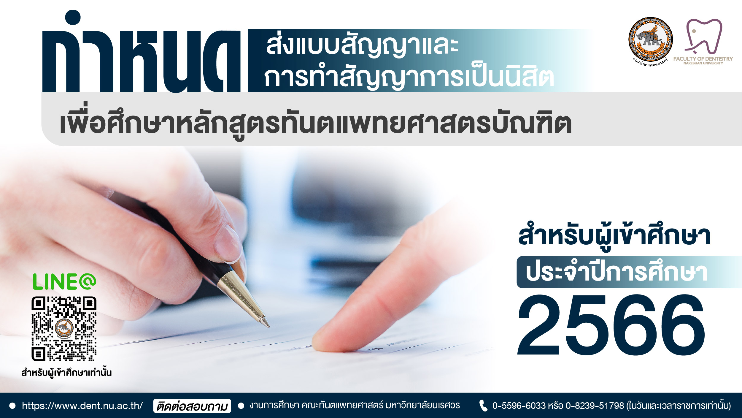 กำหนดการส่งแบบสัญญาและกำหนดการทำสัญญาการเป็นนิสิตเพื่อศึกษาหลักสูตรทันตแพทยศาสตรบัณฑิต ประจำปีการศึกษา 2566