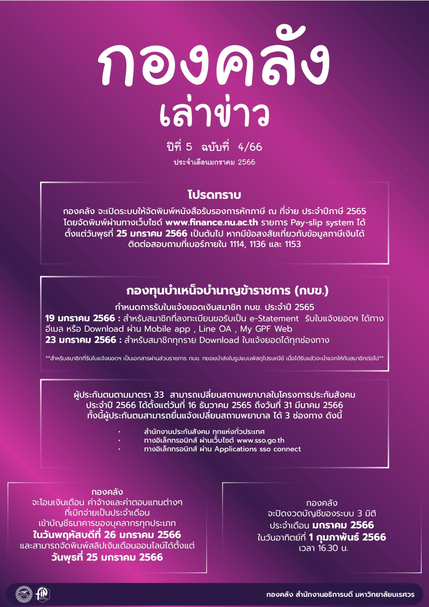 กองคลังเล่าข่าว ประจำเดือนมกราคม 2566 PrDentAc260166 Download Related posts:แนวทางปฏิบัติการเบิกจ่ายเงินงบประมาณแผ่นดินและเงินงบประมาณรายได้ช่วงสิ้นปีงบประมาณ 2566ลดอัตราเงินสมทบนายจ้างและผู้ประกันตน (เดือน ต.ค. - ธ.ค.65)สรุปประเด็นถาม-ตอบ โครงการแลกเปลี่ยนเรียนรู้กองคลังFacebookFacebookXXLINELine
