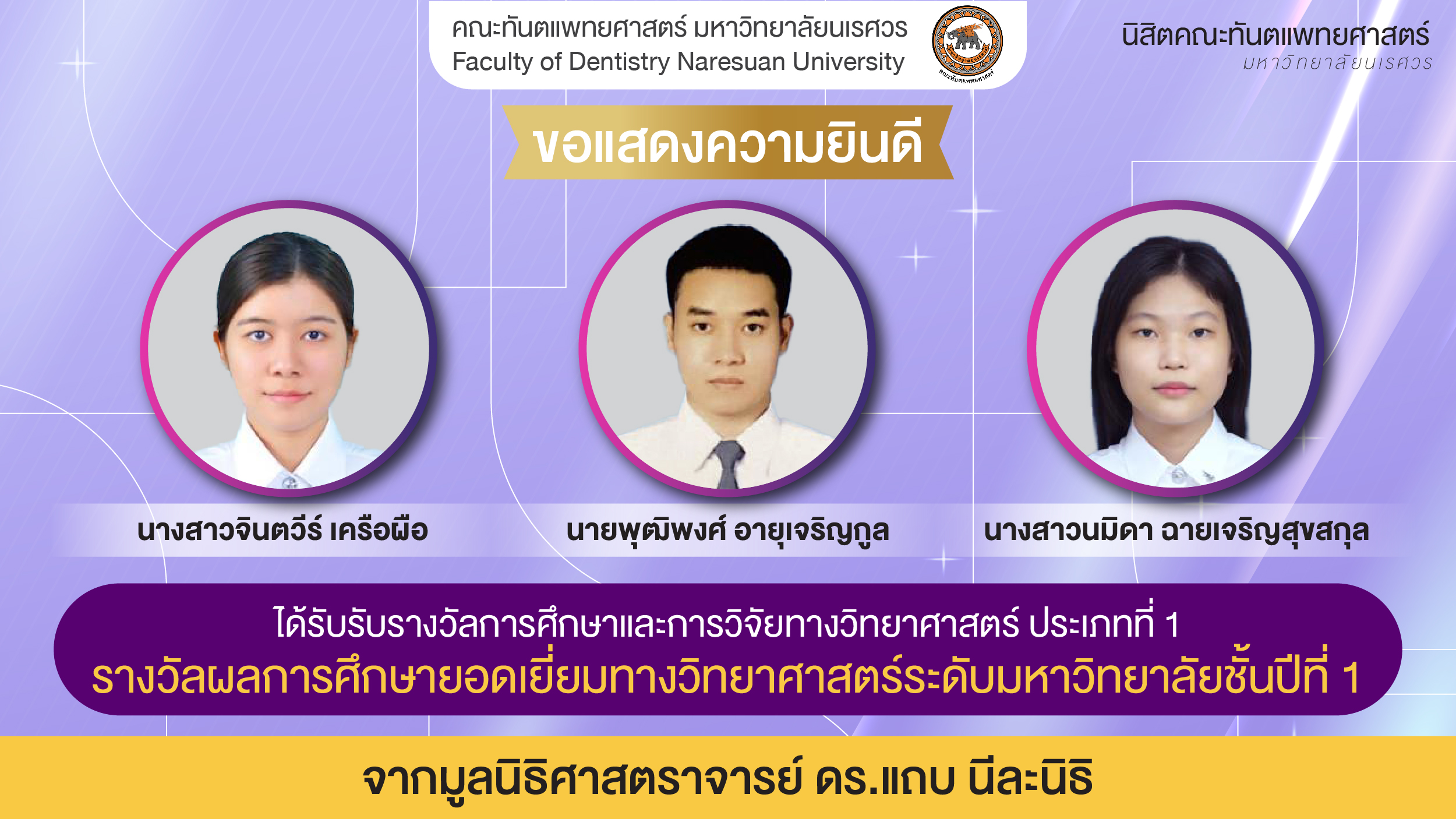 คณะทันตแพทยศาสตร์ มหาวิทยาลัยนเรศวร ขอแสดงความยินดีกับ