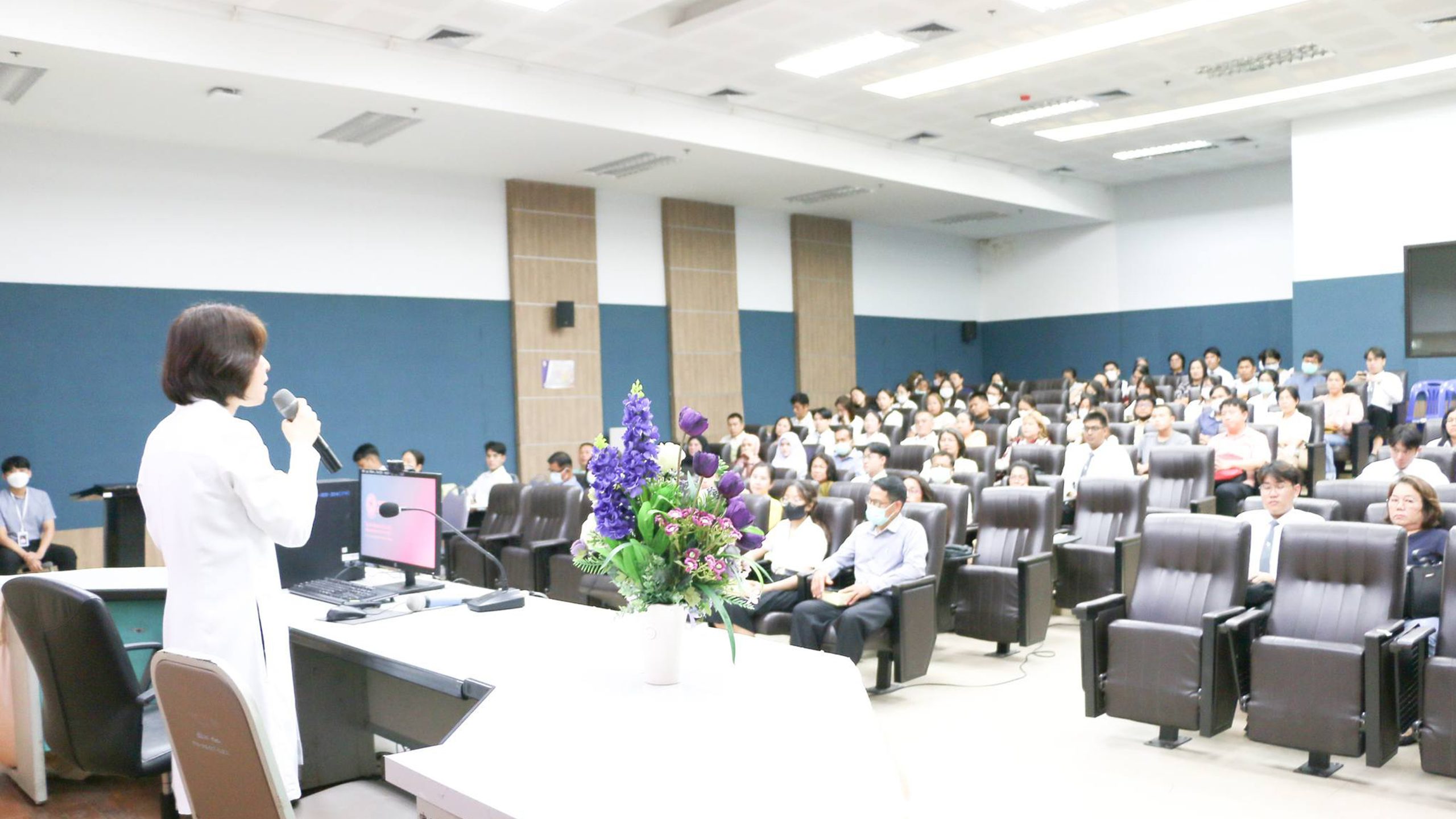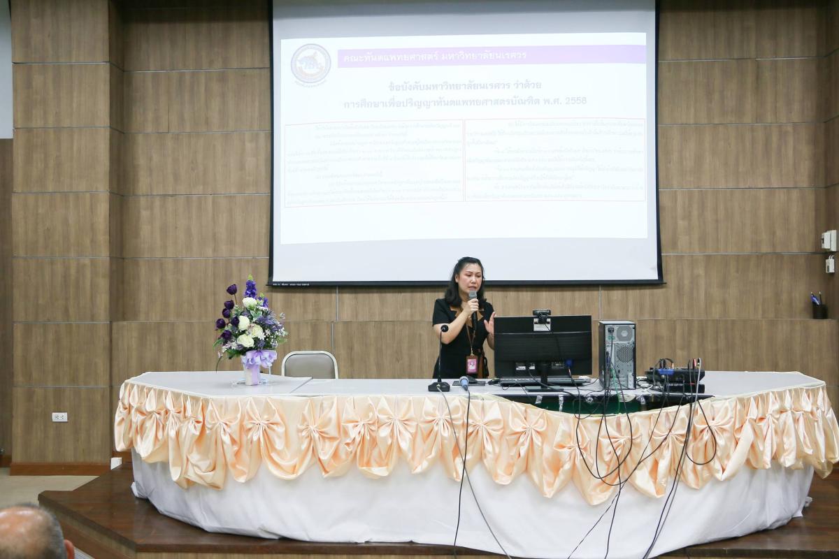 โดยมีรองศาสตราจารย์ ดร.ทันตแพทย์หญิงพีรยา ภูอภิชาติดำรง คณบดีคณะทันตแพทยศาสตร์ มหาวิทยาลัยนเรศวร กล่าวตอนรับนิสิตใหม่และผู้ปกครอง และบรรยายในหัวข้อ “โรงเรียนทันตแพทย์ชั้นแนวหน้า เพื่อตอบสนองความต้องการของสังคม”