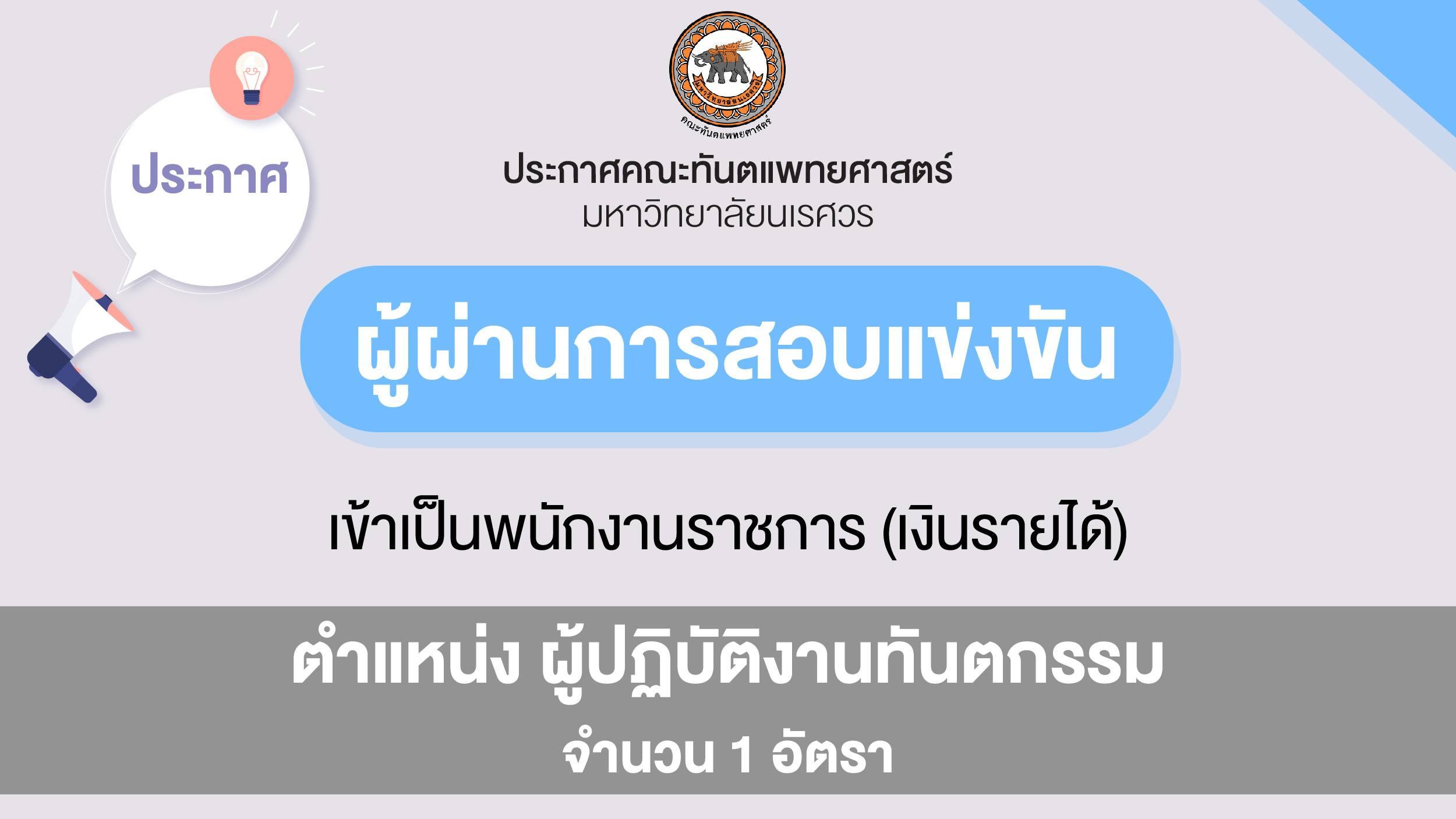 ประกาศคณะทันตแพทยศาสตร์ มหาวิทยาลัยนเรศวร เรื่อง ผู้ผ่านการสอบแข่งขันเข้าเป็นพนักงานราชการ (เงินรายได้)