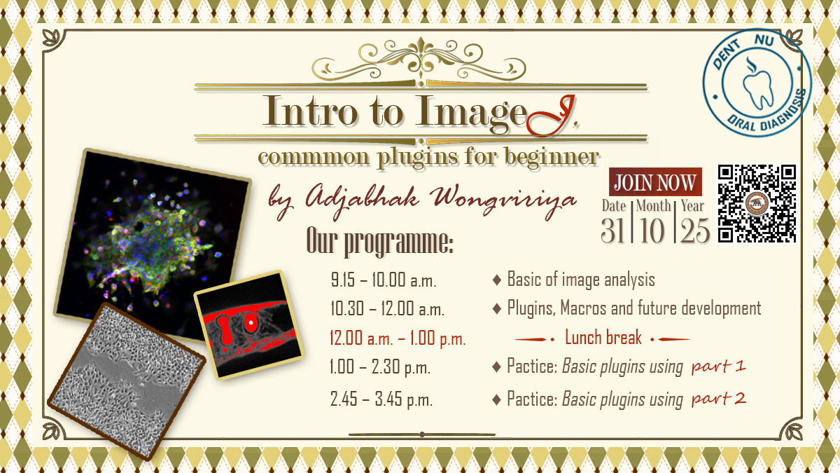 ขอเชิญชวนผู้สนใจทุกท่านร่วมเปิดประสบการณ์การเรียนรู้การวิเคราะห์ภาพเพื่องานวิจัยด้วย program ImageJ