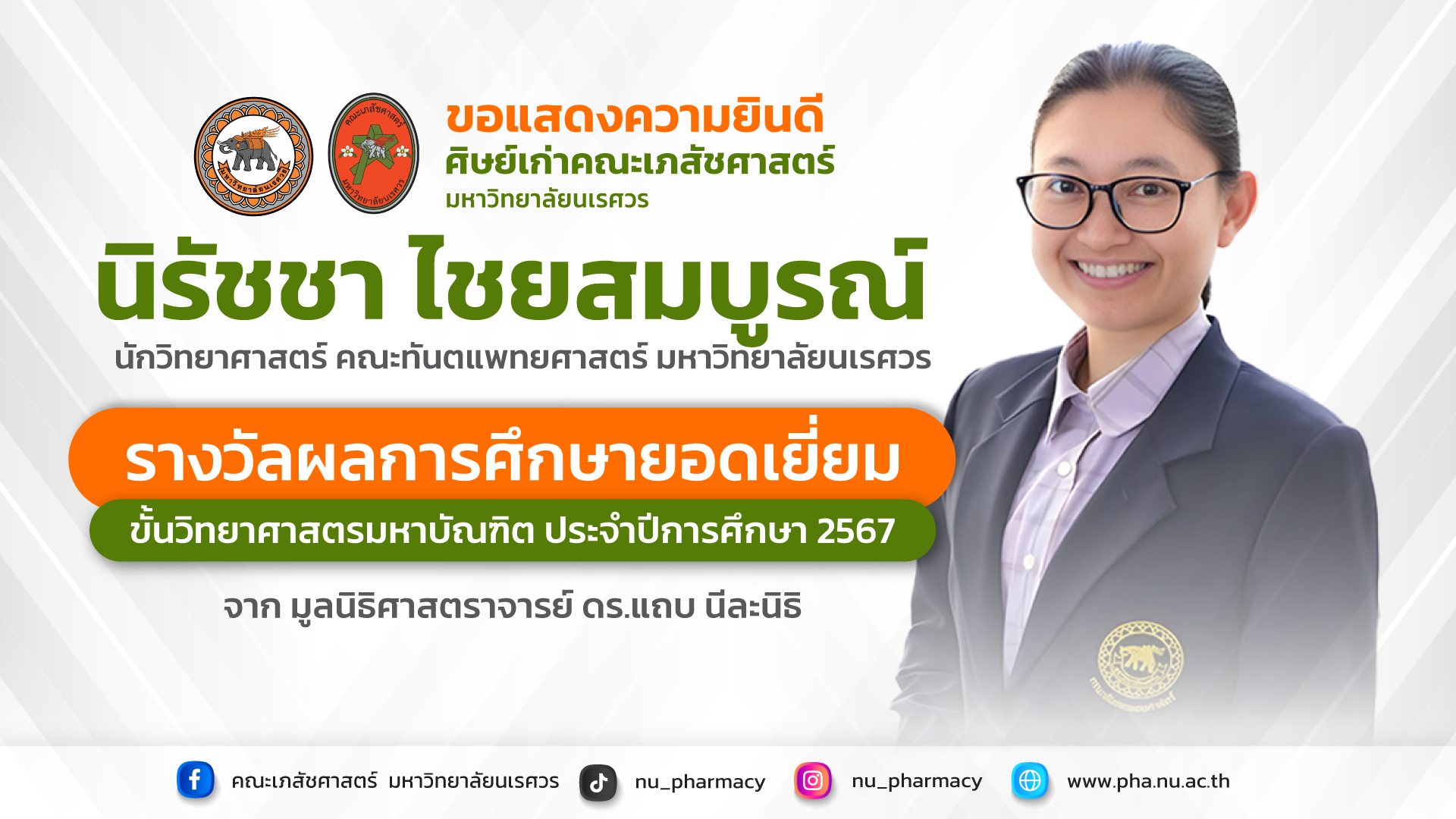 #ศิษย์เก่าคณะเภสัชศาสตร์ ได้รับรางวัลผลการศึกษายอดเยี่ยม ขั้นวิทยาศาสตรมหาบัณฑิต ประจำปีการศึกษา 2567