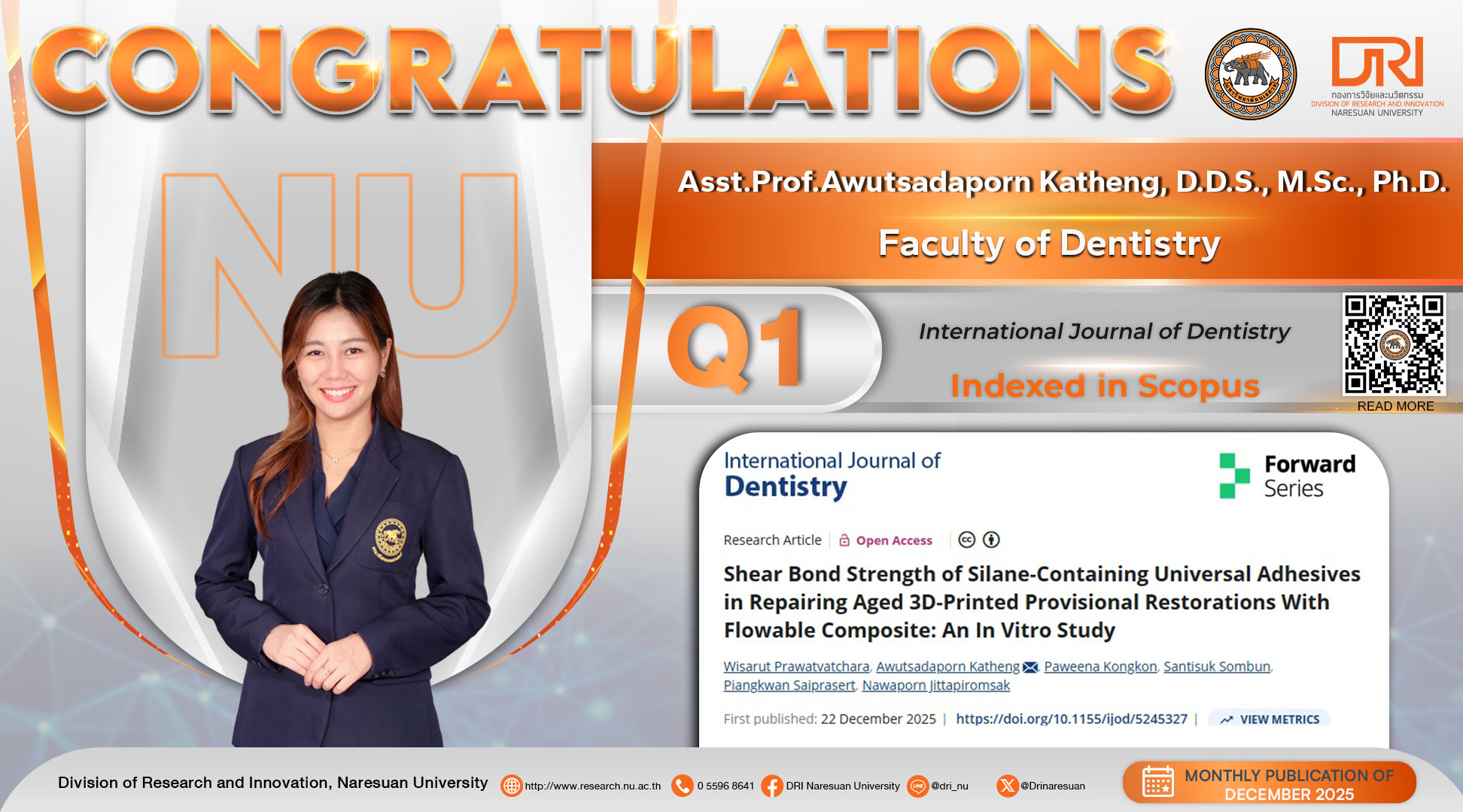 Congratulations to Asst.Prof.Awutsadaporn Katheng, D.D.S., M.Sc., Ph.D.
