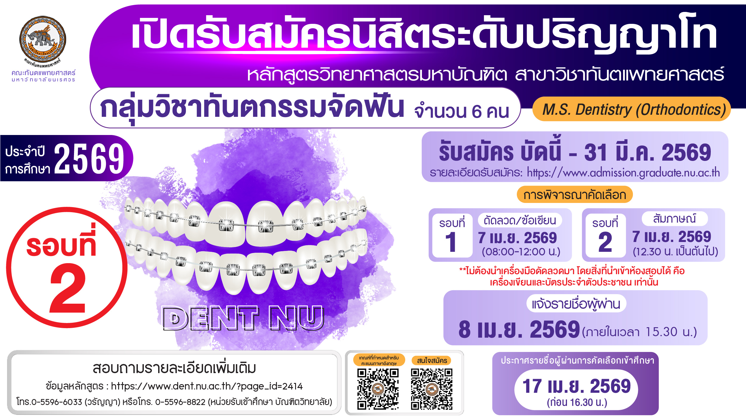 หลักสูตร ป.โท (ทันตกรรมจัดฟัน) เปิดรับสมัครนิสิตรหัส 69 (ปีการศึกษา 2569)