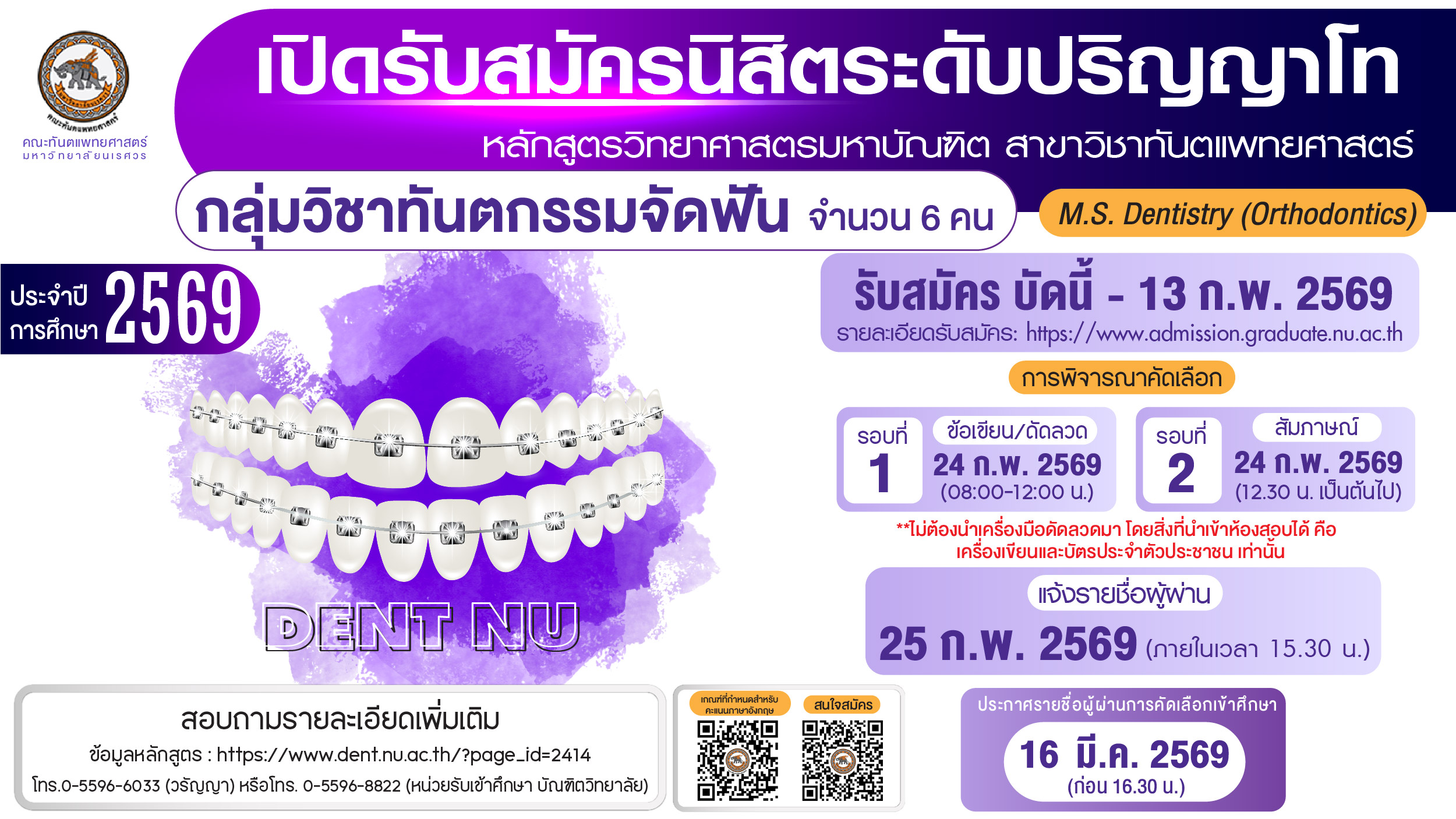 หลักสูตรวิทยาศาสตรมหาบัณฑิต สาขาวิชาทันตแพทยศาสตร์ หลักสูตรปรับปรุง พ.ศ. 2568