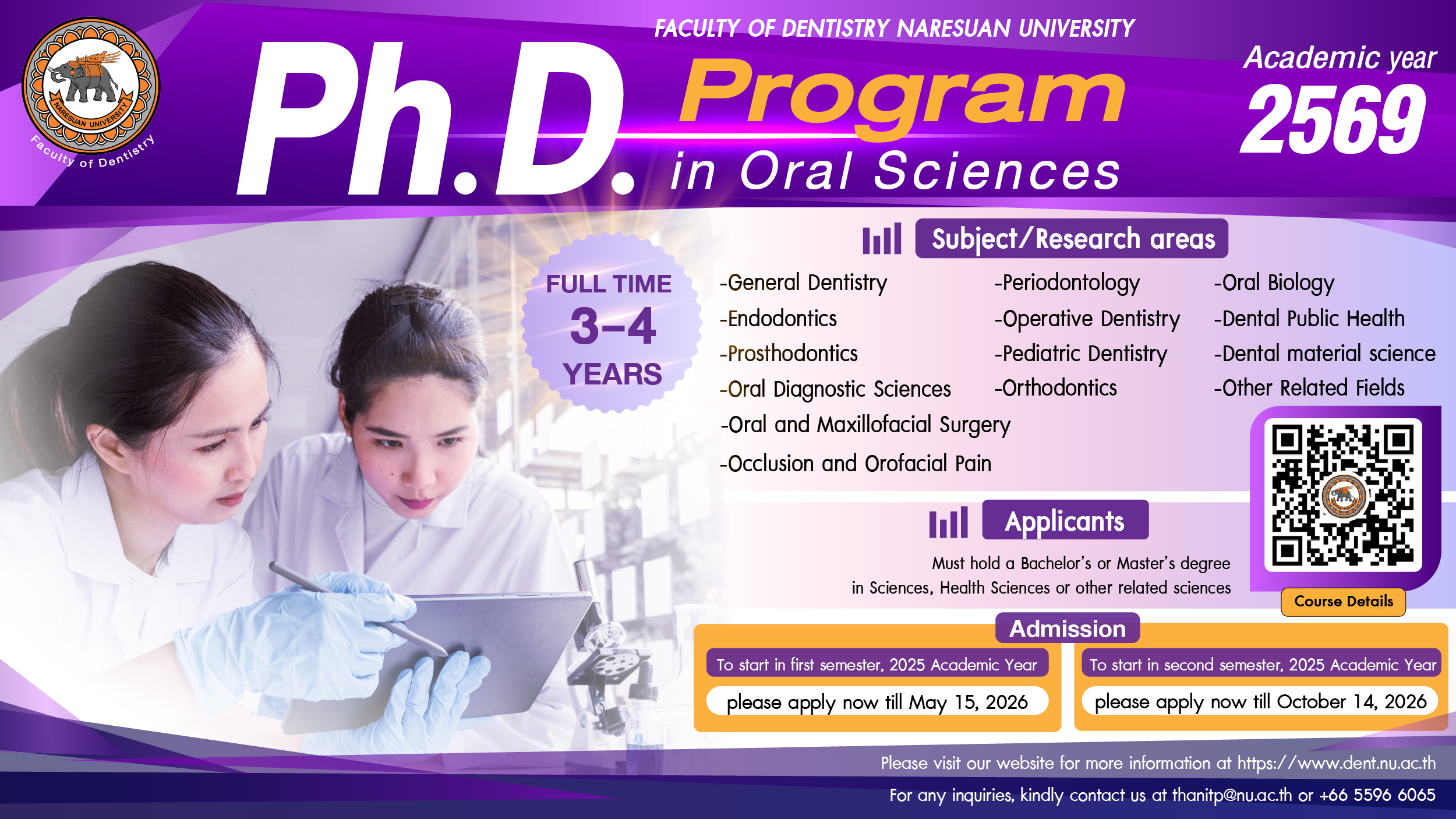 For any inquiries, kindly contact us at thanitp@nu.ac.th or Tel: +66 5596 6065