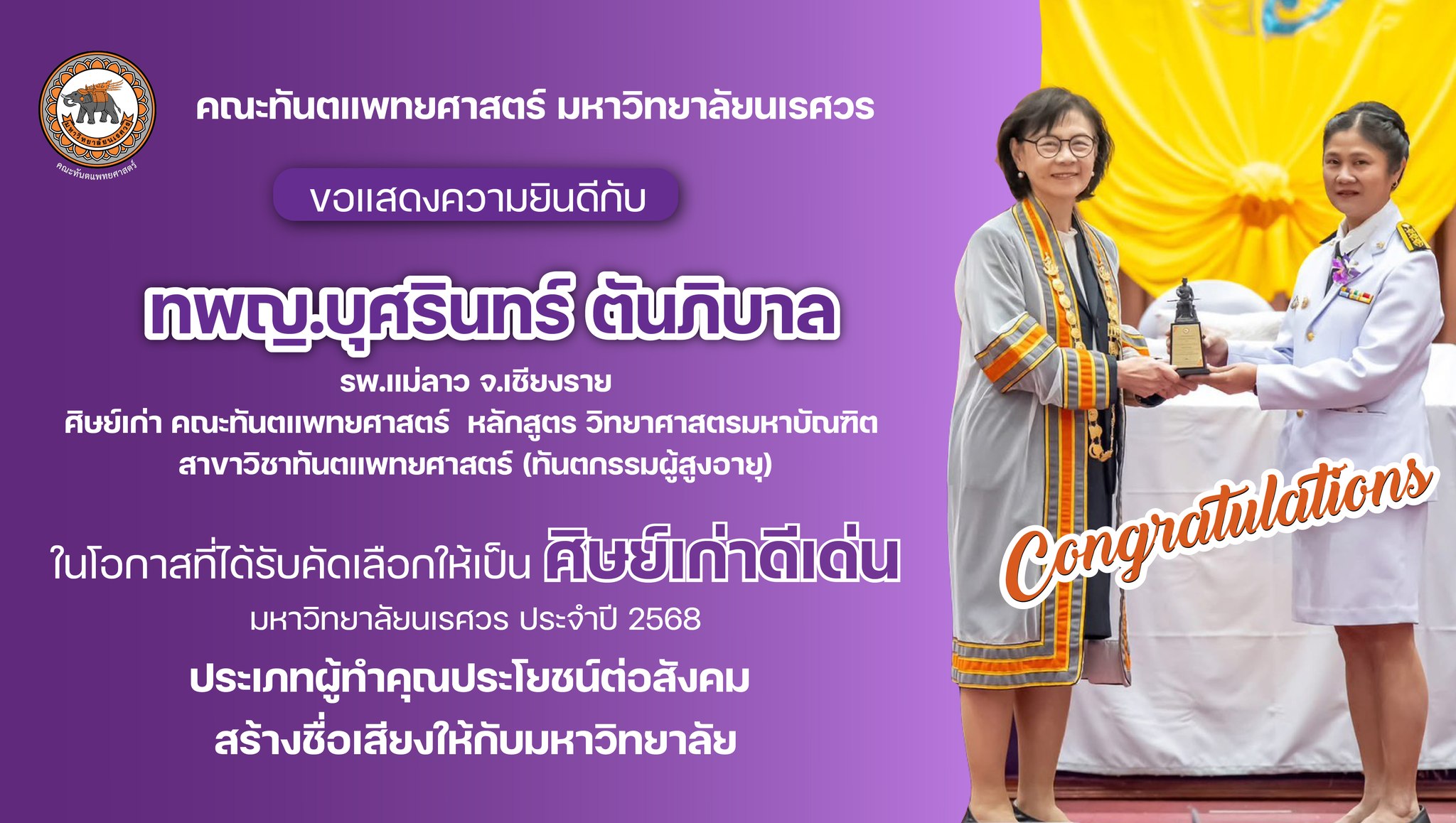 หลักสูตรทันตแพทยศาสตรบัณฑิต หลักสูตรปรับปรุง พ.ศ. 2568 (เผยแพร่ ณ วันที่ 24 กรกฎาคม 2568)